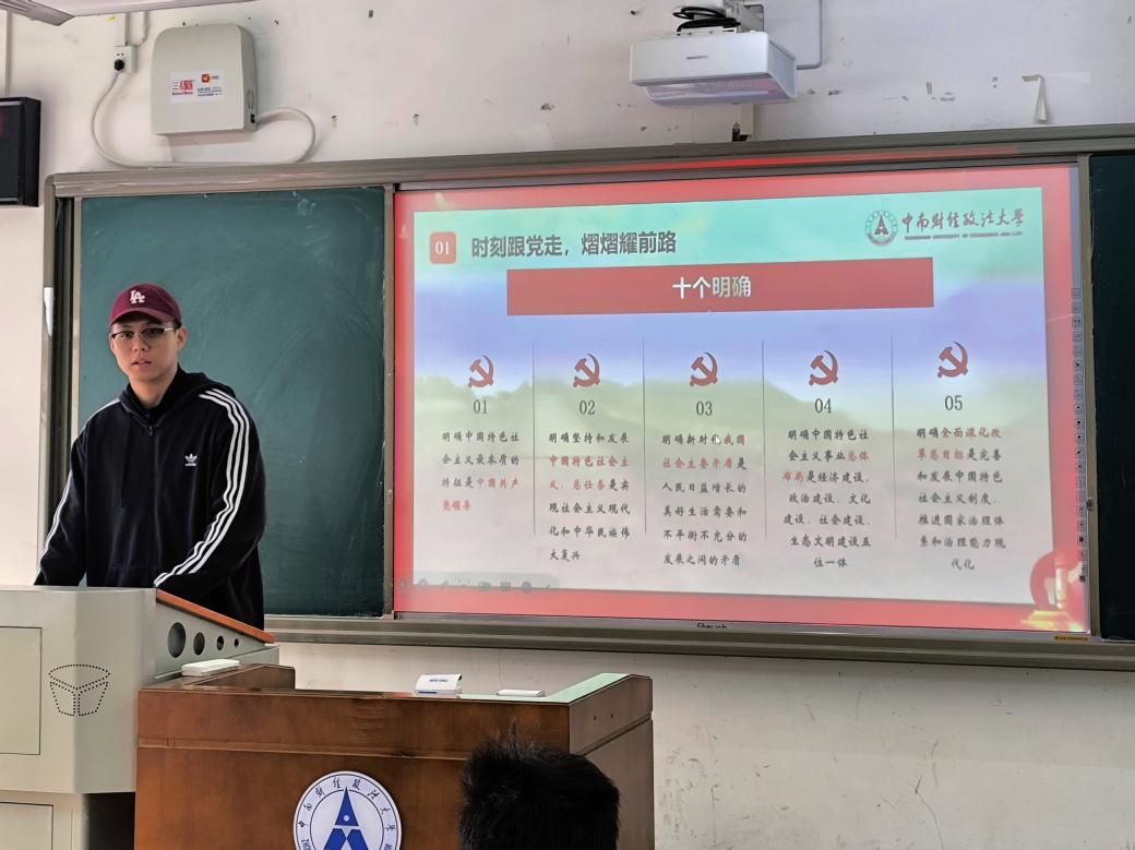 活动伊始,团支部书记何俊烨首先通过PPT展示,引导支部成员们共同学习相关内容。团支部成员们在团支部书记的引导下,纷纷表达了自己对于未来发展的期待以及作为新时代青年应承担的责任。同时,邢恩铭同学还分享了全面推进依法治国的重要性。