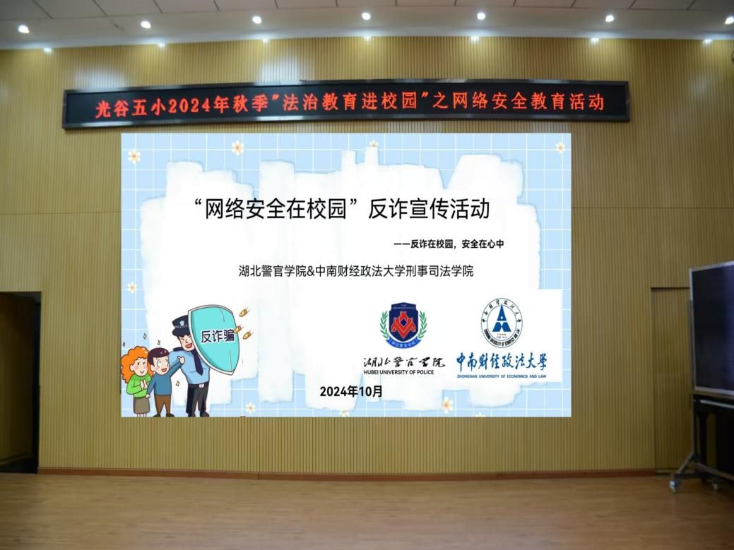 新闻网讯(学生通讯员 许欣萍 汝雨悦)随着信息技术的迅猛发展,电信网络诈骗以各种形式威胁着广大师生的财产安全和个人信息安全。为进一步增强师生的反诈意识和防范电信网络诈骗的能力,10月24日下午,刑事司法学院联合湖北警官学院在武汉市光谷第五小学开展了“网络安全在校园”反诈宣传活动。