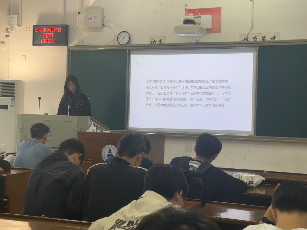 活动第二部分聚焦于中华民族的发展历程,团支书向大家展示了各民族在长期历史交融中共同创造出的中华文明。接下来,团支书通过播放短片,使同学们更加坚定了维护民族团结的信念。