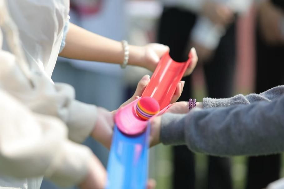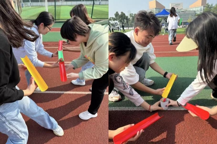 活动过程中,各位同学拼尽全力,奋勇向前,争取在最短时间内完成比赛。计时开始后,四位同学面对面站成一列,小球从第一个U型槽内划过,每经过一个U型槽便由上一位同学补位。在传递环节,不时有队伍的小球掉落在地,队员们迅速跑到起点按照规则重新开始,以不放弃、不泄气的拼搏精神完成本次活动。最终,共有两个队伍获得优胜奖,其余队伍获得参与奖。