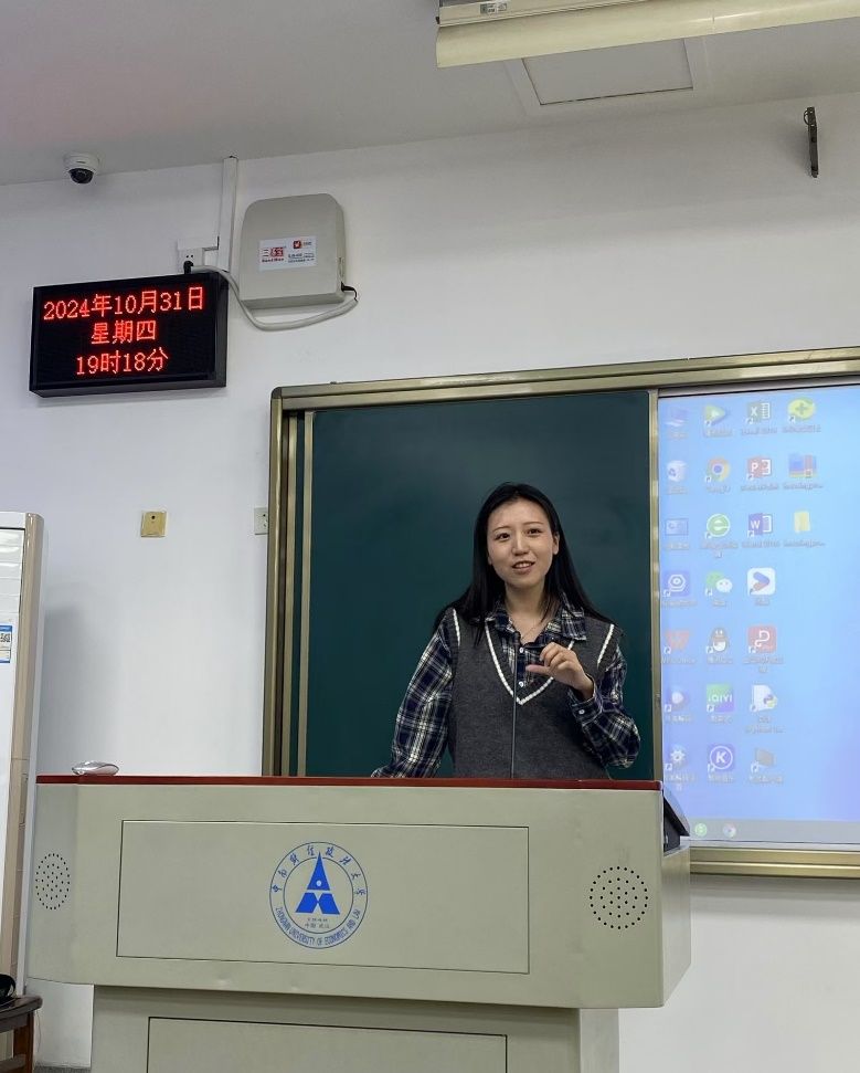 紧接着,保研至浙江大学的邓雯静同学为大家带来了保研经验分享。邓雯静从信息收集、时间线规划、背景资料准备等方面进行了详细讲解,并带领同学们研读了学院的保研政策。她建议同学们提前规划,多渠道收集信息,注重个人背景的提升,包括成绩排名、英语能力以及科研论文的撰写等。邓雯静祝愿大家都能找到自己的定位,实现自己的梦想。