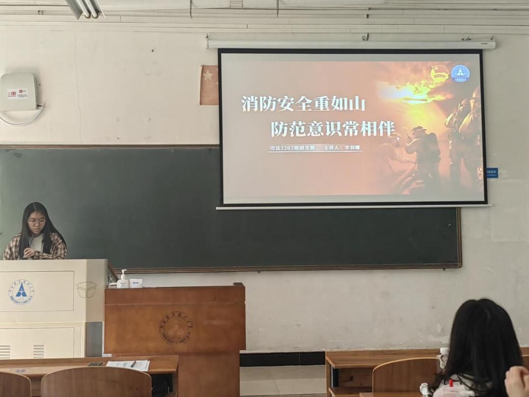 新闻网讯(学生通讯员 余越)为增强同学们的消防安全意识,提高应对火灾等突发事件的自救互救能力,11月10日,司法2202团支部于文澜106成功举办了“消防安全重如山,防范意识常相伴”消防安全主题的团日活动。