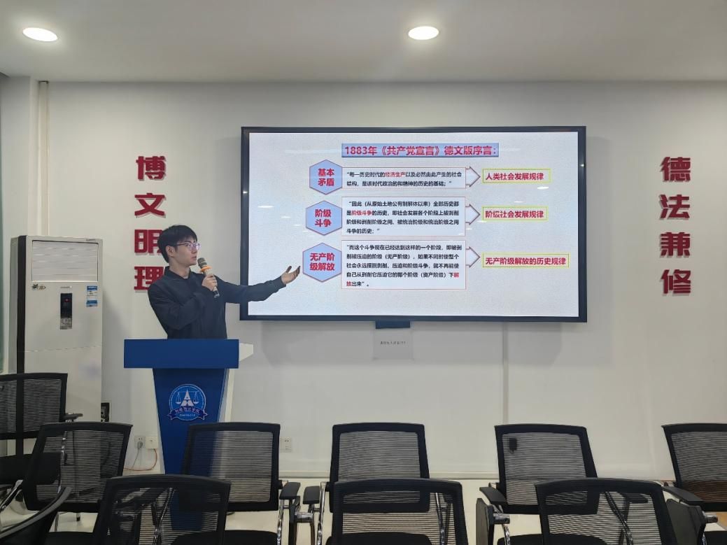 在自由交流环节,同学们积极发言,充分展示了各自的学习成果。团委组织部副部长潘锋同学和团委宣传部副部长王文豪同学分别分享了自己学习《共产党宣言》的心得感悟。