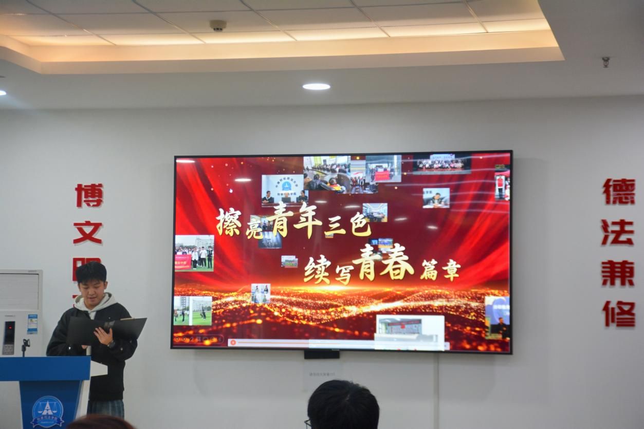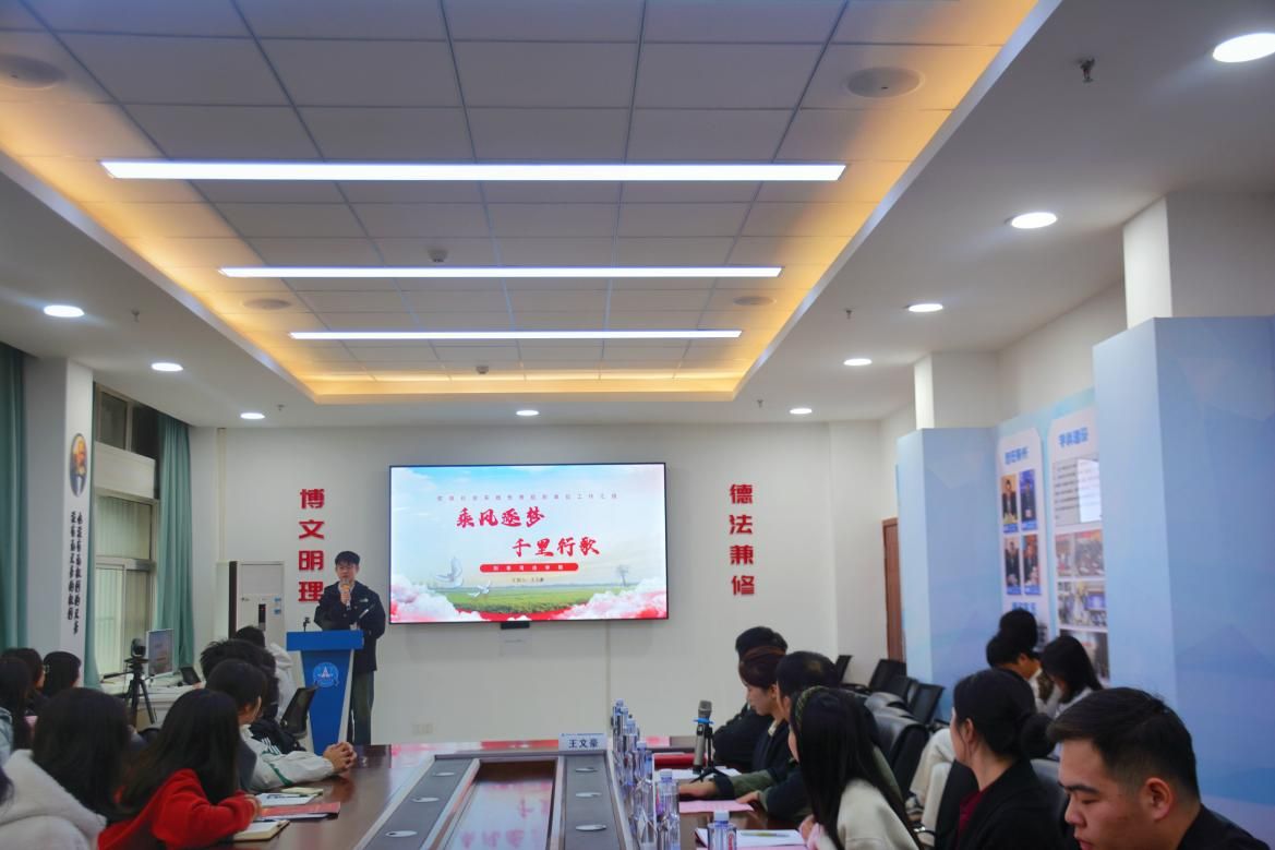 参观完监察文化与法治陈列室,同学们来到文治楼二楼会议室开展交流。刑事司法学院分团委副书记(学生)郭宸祎做分团委工作汇报。他分别从牢记政治底色、把握团学特色、增进青春本色这三个方面对我院团委工作做了全方位汇报,展示了我院团委的风采与特色。