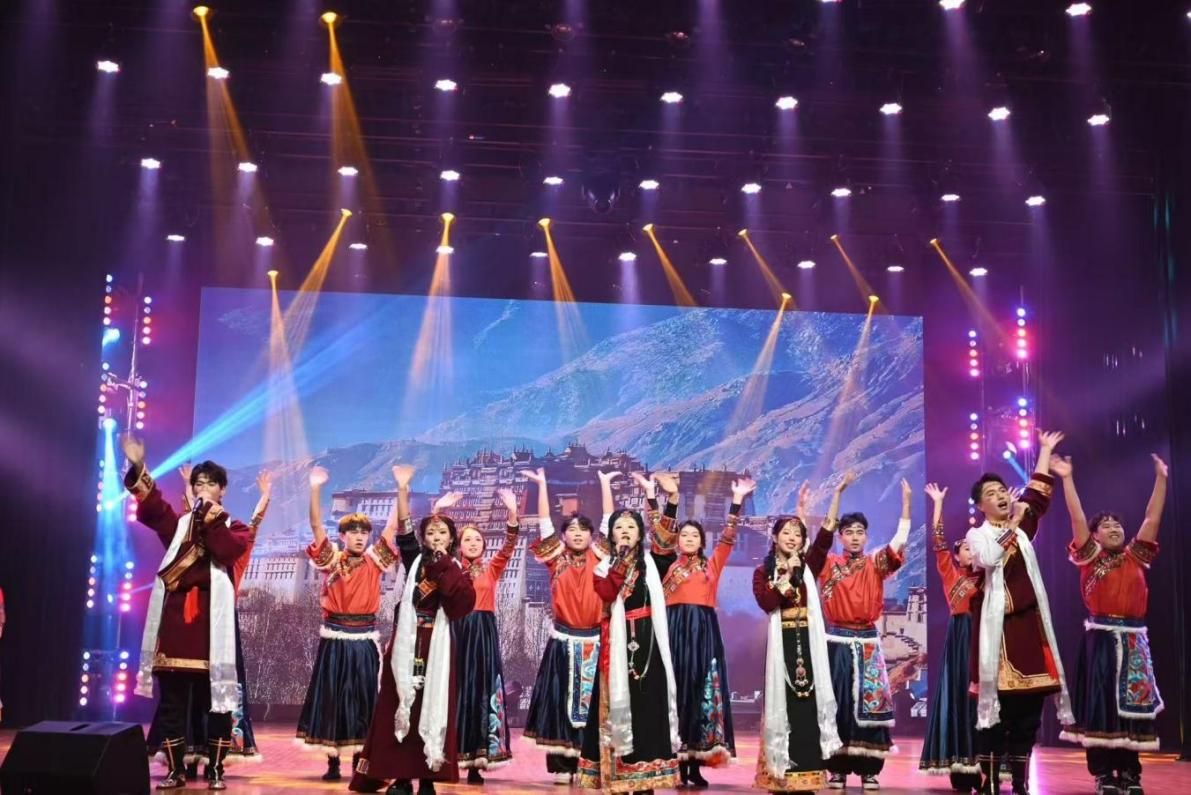 以华夏之声,传众生之情?!洞稳世鳌肥钦馐赘璧牟孛?,汉语大意是永恒的赞美,传递了藏族人民对家乡的热爱与依恋,从艺术化的角度彰显文化润藏、乡村振兴、民族团结和西藏人民和谐的幸福生活。演唱《次仁拉索》这首民歌,不仅仅展现了我院学子对民族音乐文化的热爱与传承,而且以这首充满民族风情的民歌表达了对祖国七十五华诞的美好祝愿。