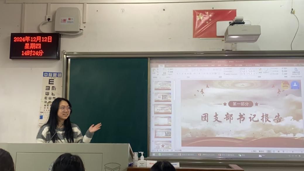 本次活动分为四个议程,第一部分由团支部书记黄希哲报告团支部教育开展情况。报告人从“文明班级”荣誉、“三会两制一课”、“团日活动”三个方面介绍情况,展现了班级积极向上、和谐友爱、重视政治理论学习的良好风貌,并总结了当前团支部建设存在的不足,在下一阶段将不断加强班级建设,提升班级凝聚力。