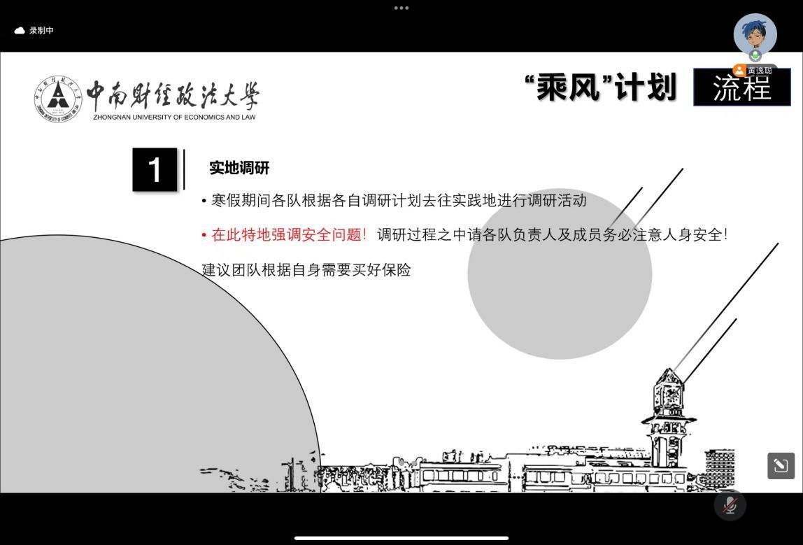 新闻网讯(学生通讯员 许欣萍 马徽致远)寒假社会实践“乘风计划”作为刑事司法学院的一项品牌活动,旨在为刑事司法学院学子提供实践平台,提升学生的实践能力和社会责任感。为确保此次寒假社会实践活动的顺利进行,12月21日晚上8时,团委组织部双创实践办公室对各支实践小队负责人开展线上培训会议,各社会实践队伍负责人全员参与。