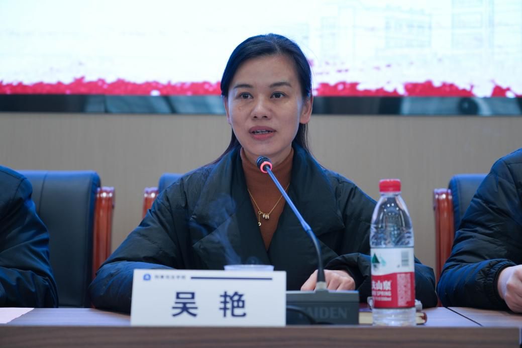 校工会副主席兼妇女委员会副主任吴艳到会致辞。她深情回顾了学院工会与校工会携手共进的历程,对学院工会取得的成绩予以高度赞扬,并着重强调了2025年工会工作的重点方向。一是持续强化职工思想引领,深入贯彻党的二十大、二十届三中全会及全国教育大会精神,筑牢教职工思想根基;二是大力弘扬劳模精神与教育家精神,激励广大教职工奋勇争先;三是全力做好维权与服务保障工作,切实维护教职工合法权益,为教职工排忧解难。