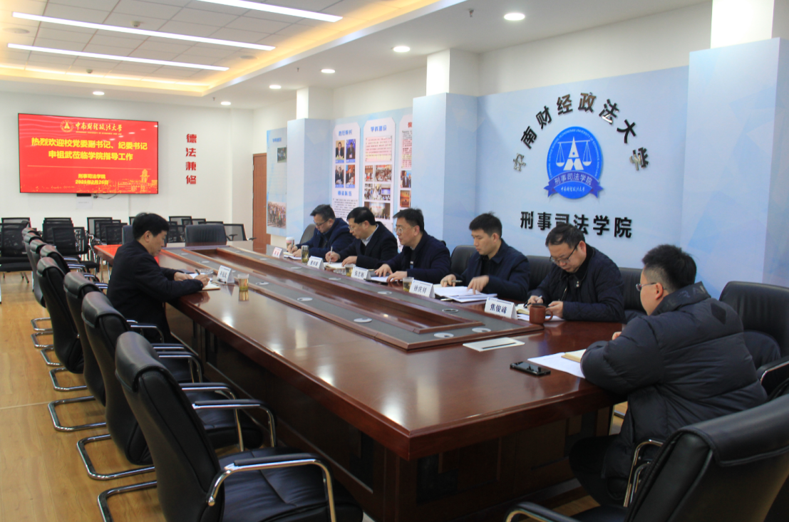 新闻网讯(通讯员 刘宇 摄影 柯希鹏)2月26日上午,在文治楼2楼会议室,校党委副书记、纪委书记申祖武赴刑事司法学院走访调研,与学院班子成员进行了深入交流,亲切慰问学院全体师生。