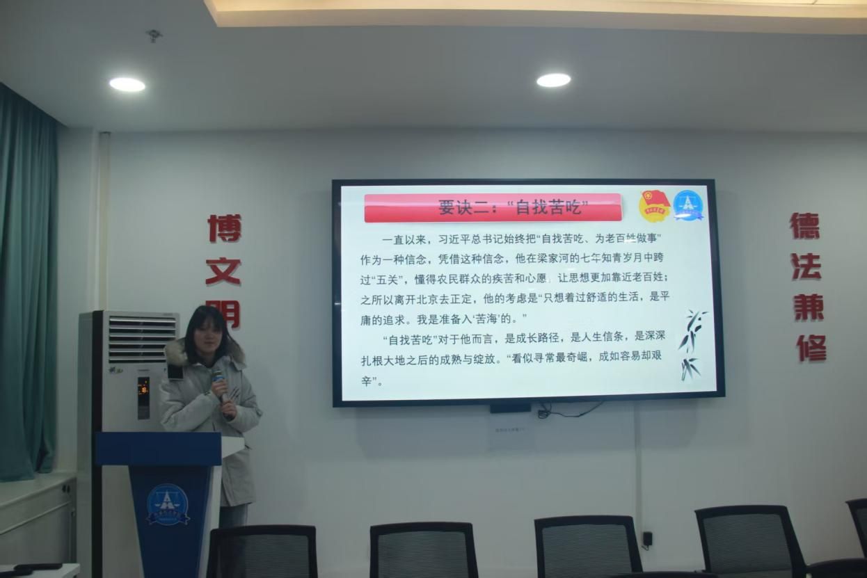 在分享交流环节,同学们积极踊跃发言,充分展示各自学习成果。院学生会主席团成员朱彬彬、国旗护卫队队长李熠彤向大家分享学习感想,并表示通过对本书的学习,更加坚定了自己的理想和目标,进一步坚定信心、振奋精神,攻坚克难、扎实苦干,汲取养分以拼搏青春。