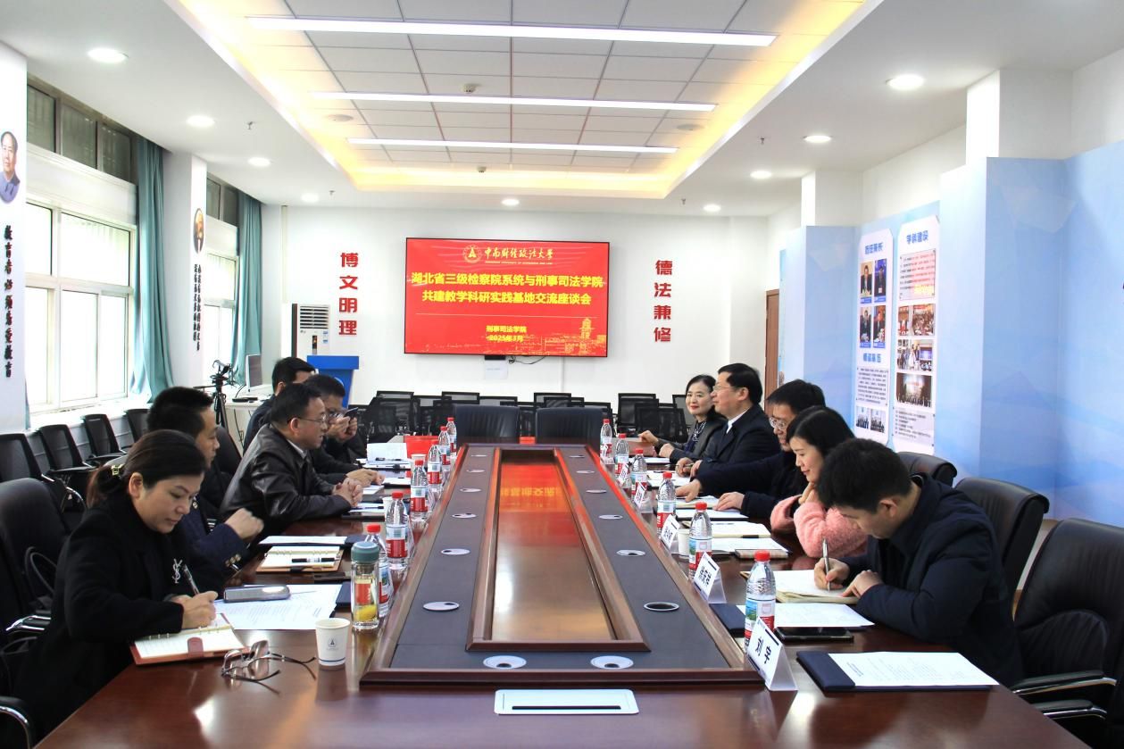 (通讯员 柯希鹏 邓琳)为深化检校协同创新机制,推动检察实务与法学教育深度融合,着力构建“理论研习+实战赋能”的高层次法治人才培养体系,3月7日上午10:30,湖北省人民检察院、咸宁市人民检察院及通山县人民检察院三级检察机关相关负责人与刑事司法学院联合举办“共建教学科研实践基地交流座谈会”,学校科研部副部长张今柯,刑事司法学院党委书记张志刚、副院长董邦俊、党委副书记徐庆祥、警事科学系主任林慧青等参会,双方就深化开展科研合作、学术交流、学生实习实践、优秀毕业生招聘、干部培训等达成初步合作意向。