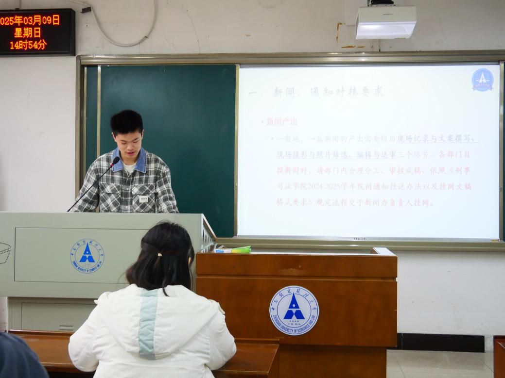 新闻网讯(学生通讯员 姚知瑞 汝雨悦 徐凌喆 朱彬彬)为进一步提升宣传水平,3月9日,刑事司法学院学生会外宣部于文澜楼103教室举办了本学期第一次宣传技能培训会。