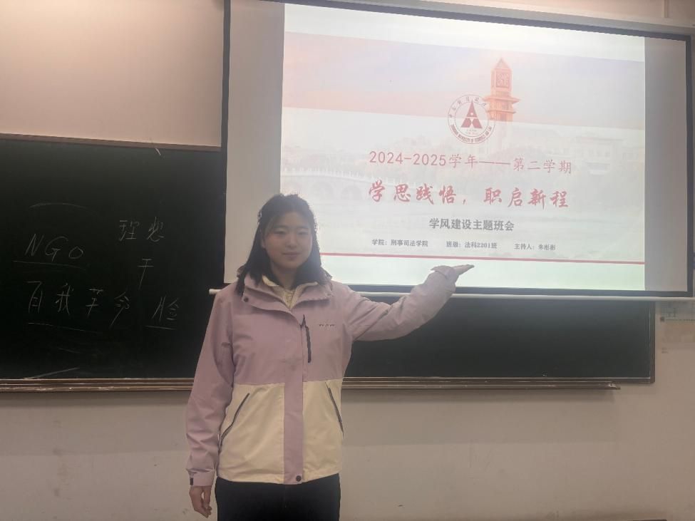 新闻网讯(学生通讯员 朱彬彬 冯旭东)为更好传承红色基因、凝聚青年力量,3月28日,法科2201班团支部在文波301教室开展“赓续红色血脉,铸就青春担当”主题团日活动暨“学思践悟,职启新程”主题学风发展班会?;疃煞?201班学习委员主持,法科2201班班级导师刘建华老师参与此次班会。