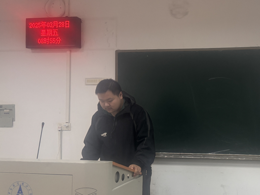会议第一项,团支书熊博带领大家学习红色文化,带领同学们走进红色历史的长河,详细介绍了红色文化的历史渊源、红色资源的分布以及红色血脉的传承意义。从革命先辈的英勇事迹到红色文物背后的故事,同学们深刻感受到红色文化中蕴含的革命精神和家国情怀。