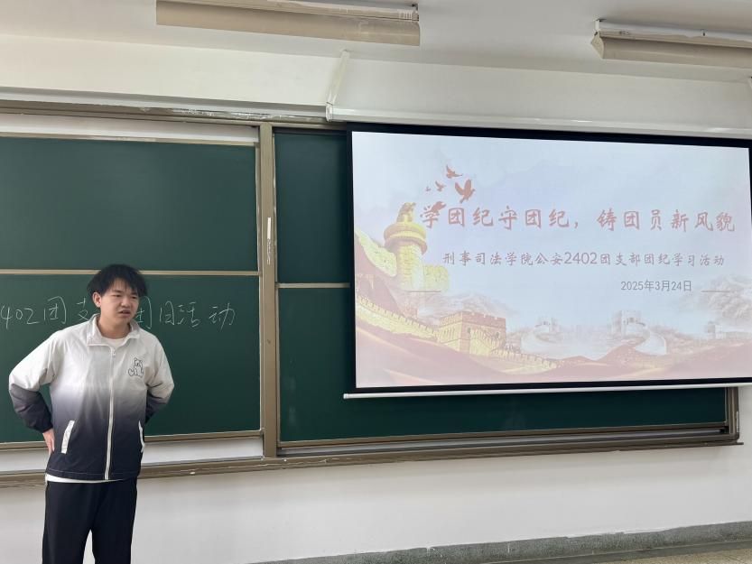 新闻网讯(学生通讯员冉庭恺)为深入贯彻落实全面从严治团要求,进一步强化团员纪律意识,公安2402团支部于3月24日在文泰楼304教室开展《中国共产主义青年团纪律处分条例(试行)》专题学习会,旨在强化青年团员的规矩意识和责任担当,引导青年团员坚定理想信念、锤炼坚韧品格。