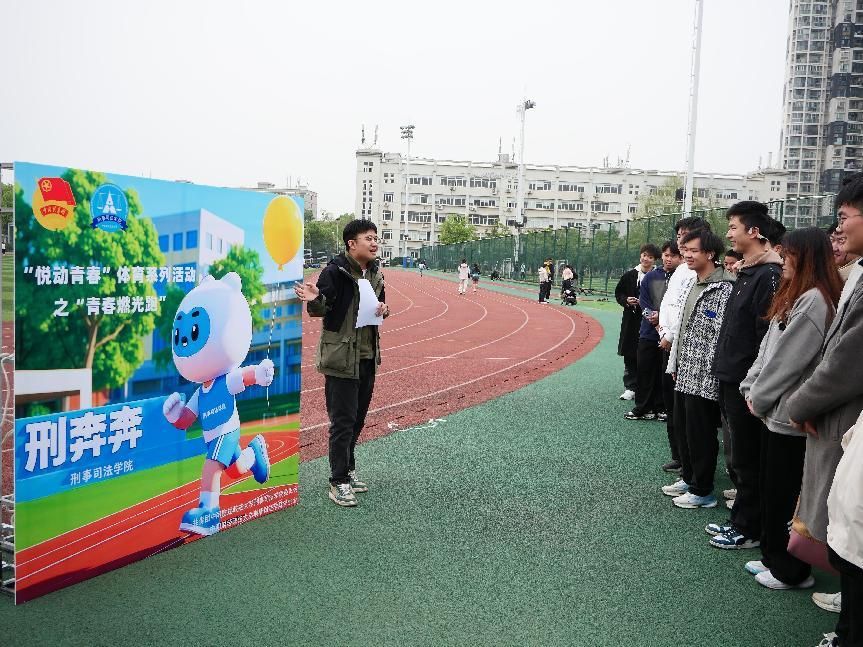 活动开始前,志愿者们已到达现场布置活动场地。活动伊始,张凡稷老师发表动员讲话。他指出,“悦动青春”体育系列活动是我们刑事司法学院的特色活动之一,适量的体育运动能够促进身体健康,保持积极的生活态度,培养坚持和自律的品质。张凡稷老师希望大家像吉祥物“刑奔奔”一样,积极向上,勇往直前。