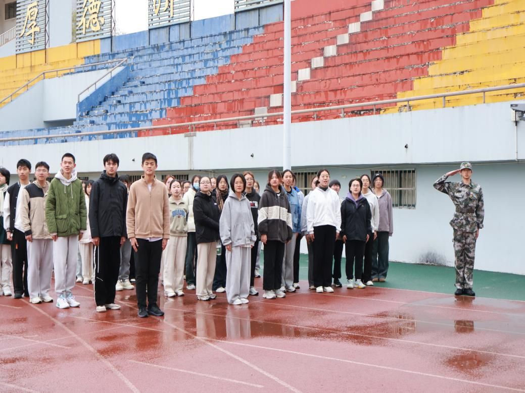 绵绵细雨,浇不灭同学们的炽热内心。在国旗护卫队带领下,同学们以俯卧撑、平板支撑等基础力量训练挑战自我,一千米训练体验项目则进一步凝聚了集体意识,让同学们体悟了国旗护卫队“携手共进,永不言弃”的精神内核。