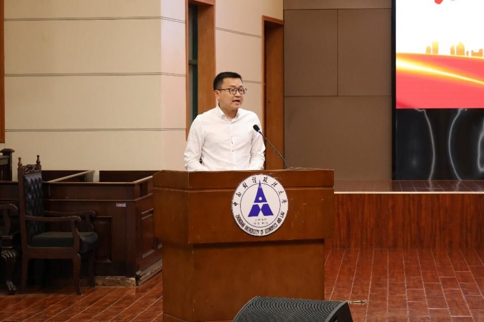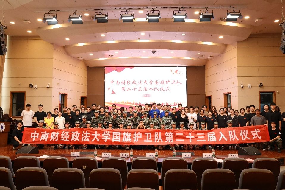 新闻网讯(学生通讯员 黄任宇菡 陈可璇 鲁玉婷)4月17日中午,中南财经政法大学国旗护卫队第23届新队员入队仪式在文泰楼模拟法庭一举行。刑事司法学院党委书记张志刚,党委学工部、人武部副部长白雷,刑事司法学院党委副书记徐庆祥,党委学工部、人武部思想教育办公室主任黄艳,党委学工部、人武部国防教育办公室胡万松,刑事司法学院分团委书记张凡稷,兄弟院校国旗护卫队成员代表,中南财经政法大学国旗护卫队第22届队委以及第23届全体新队员参加,入队仪式由徐庆祥主持。