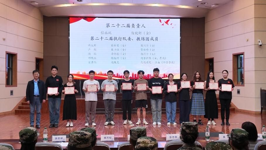 徐庆祥宣读《中南财经政法大学国旗护卫队第23届集训优秀队员名单》。白雷为他们颁发了荣誉证书。许皇翔作集训优秀队员代表发言,分享了队员们不畏艰辛、突破自我的故事。