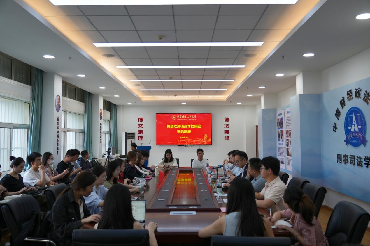 新闻网讯(学生通讯员 郭东来 摄影 孙惟安)2025年4月18日下午,最高人民检察院“检察实务专家进校园”系列课程第十一讲——刑事检察实务讲座在中南财经政法大学南湖校区文治楼二楼会议室成功举行。本次讲座特邀湖北省武汉市人民检察院第一检察部主任、三级高级检察官徐孟李担任主讲嘉宾,刑事司法学院副院长董邦俊教授担任主持人,刑事司法学院袁建伟副教授、张正宇副教授、柯希鹏老师参与。