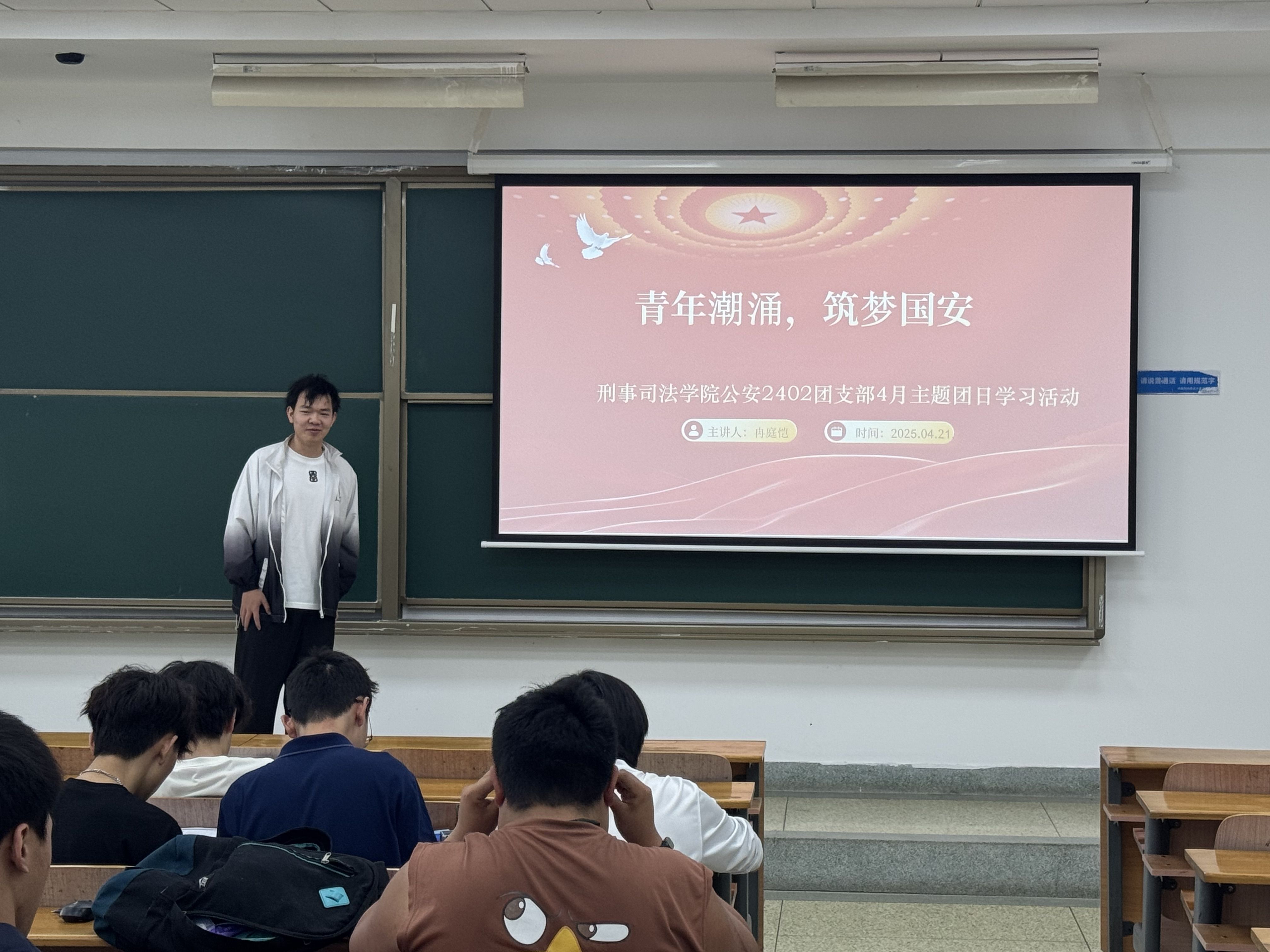 新闻网讯(学生通讯员 冉庭恺)4月21日,公安2402团支部在文泰403召开了 “青年潮涌,筑梦国安”4月国家安全主题团日活动。此次班会旨在强化同学们的国家安全意识,引导青年学子践行维护国家安全的使命担当。?