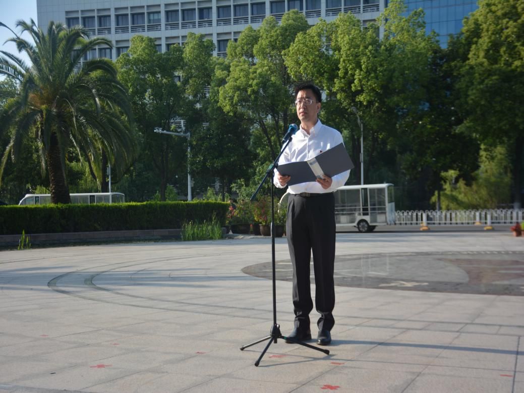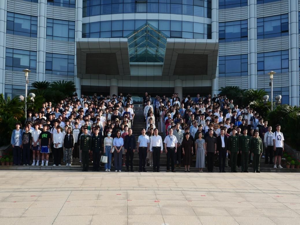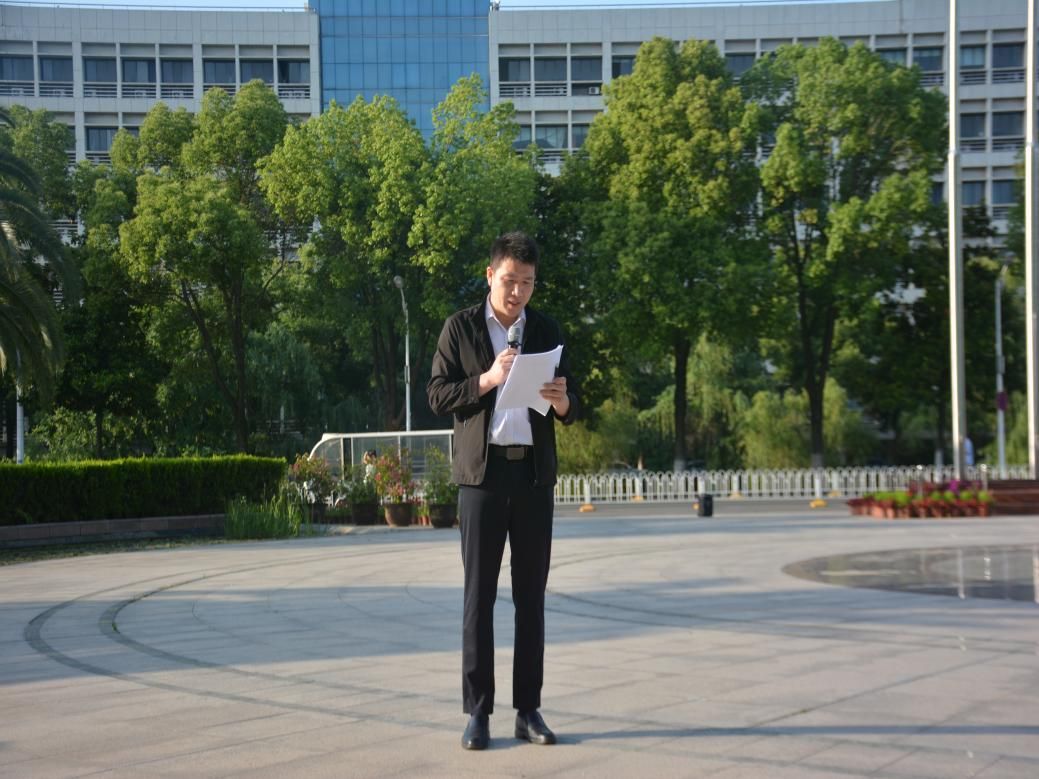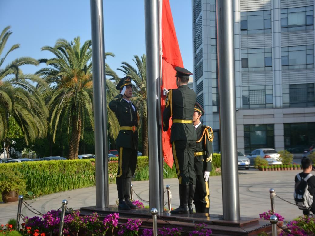 活动伊始,国旗护卫队以齐步行进方式从文治楼出发,最终到达中原楼前。随着《义勇军进行曲》奏响,全体师生肃立行注目礼,齐唱国歌。