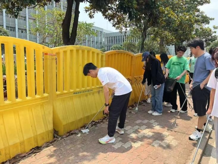 春末夏初的中南大校园草木葱茏,阳光和煦,武汉正午的烈日已有了些许灼热,但没有一位志愿者退缩。14时,志愿者们手持扫帚、垃圾夹、环保袋等工具,准时在文治楼前集合?;疃涸鹑思蛞得鞣止ず螅欠肿榍巴N来η暗缆?、中区花园及教学楼周边区域,有序开展清洁工作。没有在树荫下偷懒乘凉的,更没有迟到早退的,相反,志愿者们穿梭于绿荫步道与花坛间,仔细清理散落的纸屑、塑料袋,弯腰拾起草丛中的饮料瓶,甚至耐心抠出石缝里的烟蒂。针对春季风大导致的落叶堆积问题,大家分工协作,有的负责清扫路面,有的将落叶装入环保袋集中处理。