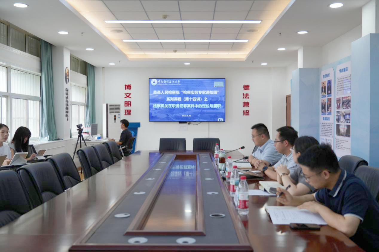 新闻网讯(学生通讯员 郭东来 摄影 孙惟安)5月30日下午14:30,由中南财经政法大学刑事司法学院主办、刑事司法学院研究生会承办、硕士生公安学党支部协办的 “检察实务专家进校园”系列课程第十四讲在南湖校区文治楼二楼会议室顺利开讲。本次讲座邀请湖北省武汉市人民检察院第一检察部一级检察官高尚担任主讲人,刑事司法学院副院长焦俊峰教授、张正宇副教授主持,黎晓露老师、赵祖斌老师及部分硕士生参与。