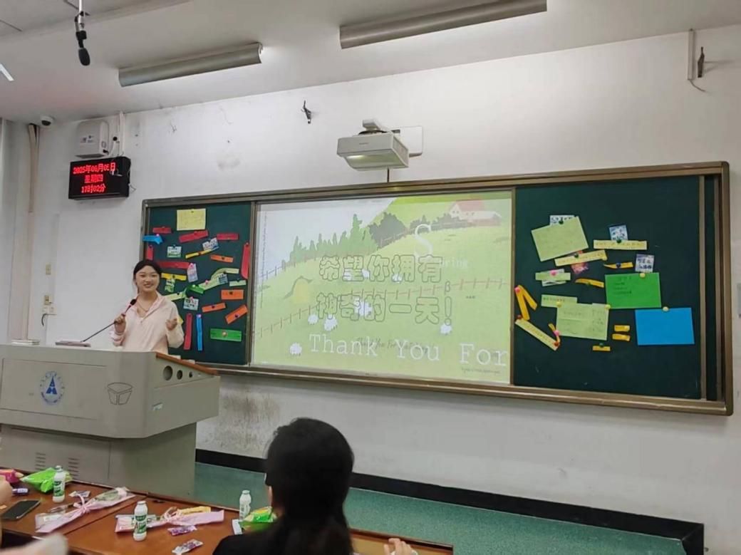 活动最后,班级导师梁艳艳为大家寄语。她提到大学是人生中非常幸福的一段时光:“曾经的你们面临升学的压力,未来的你们也会有工作生活上的困扰,那就更应当趁着大学的美好时光,好好感受生活,热爱生活!”