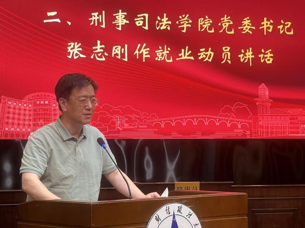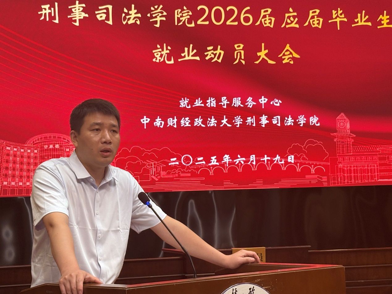 新闻网讯(学生通讯员 朱彬彬)为贯彻落实学校关于就业工作部署要求,进一步加强毕业生就业指导服务工作力度,6月19日上午,刑事司法学院在文泰楼模拟法庭一召开2026届应届毕业生就业动员大会。刑事司法学院党委书记张志刚、就业指导服务中心副主任贾晓、刑事司法学院党委副书记徐庆祥、2026届毕业生辅导员赵轶以及2026届全体本科毕业生参会。会议由赵轶主持。