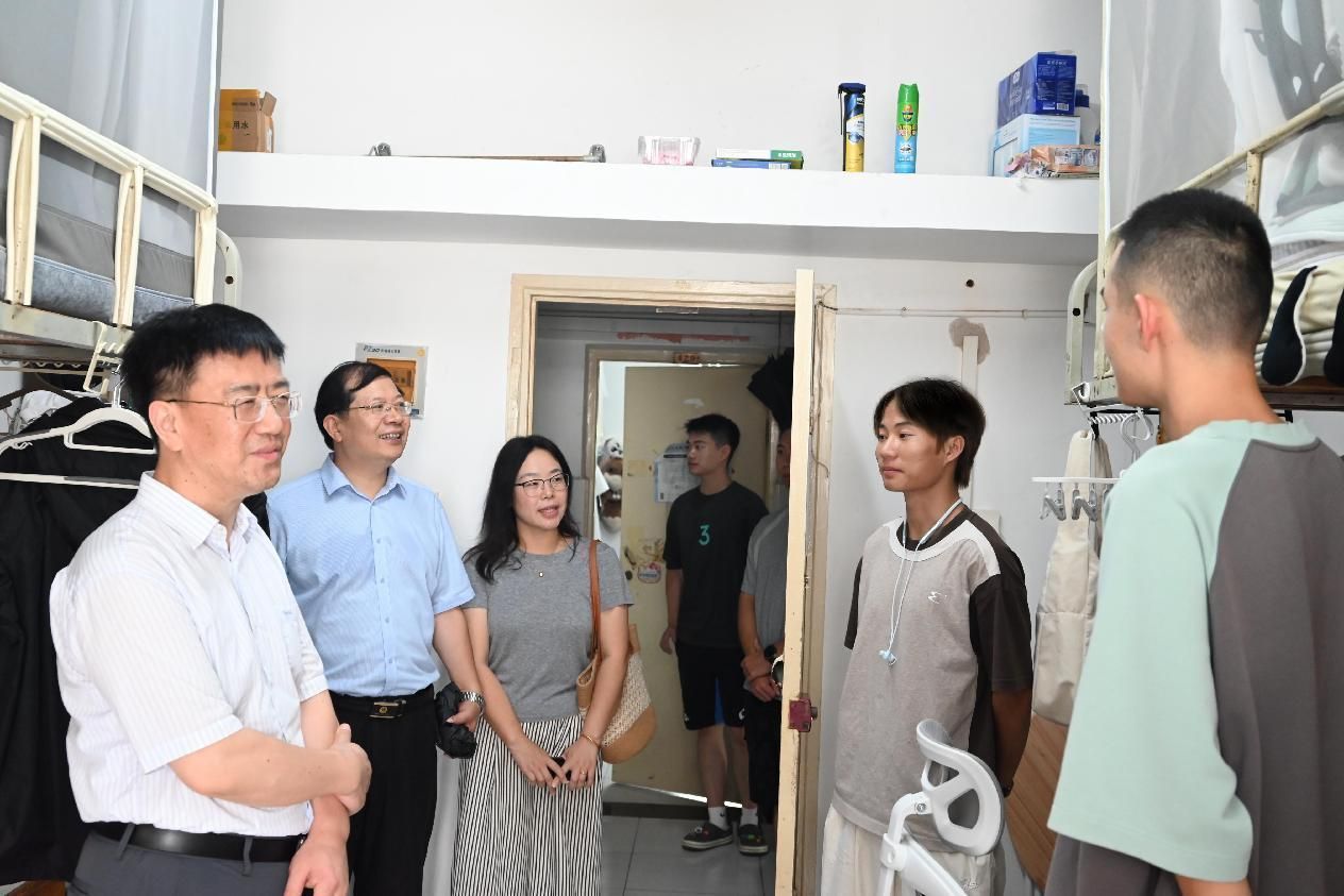 中午时分,院领导走访学生宿舍,与同学们亲切交流,仔细询问暑假生活、学业进展和未来规划,并就学业困惑、生活难题等进行现场解答,叮嘱同学们尽快调整状态,以饱满精神投入新学期的学习生活。