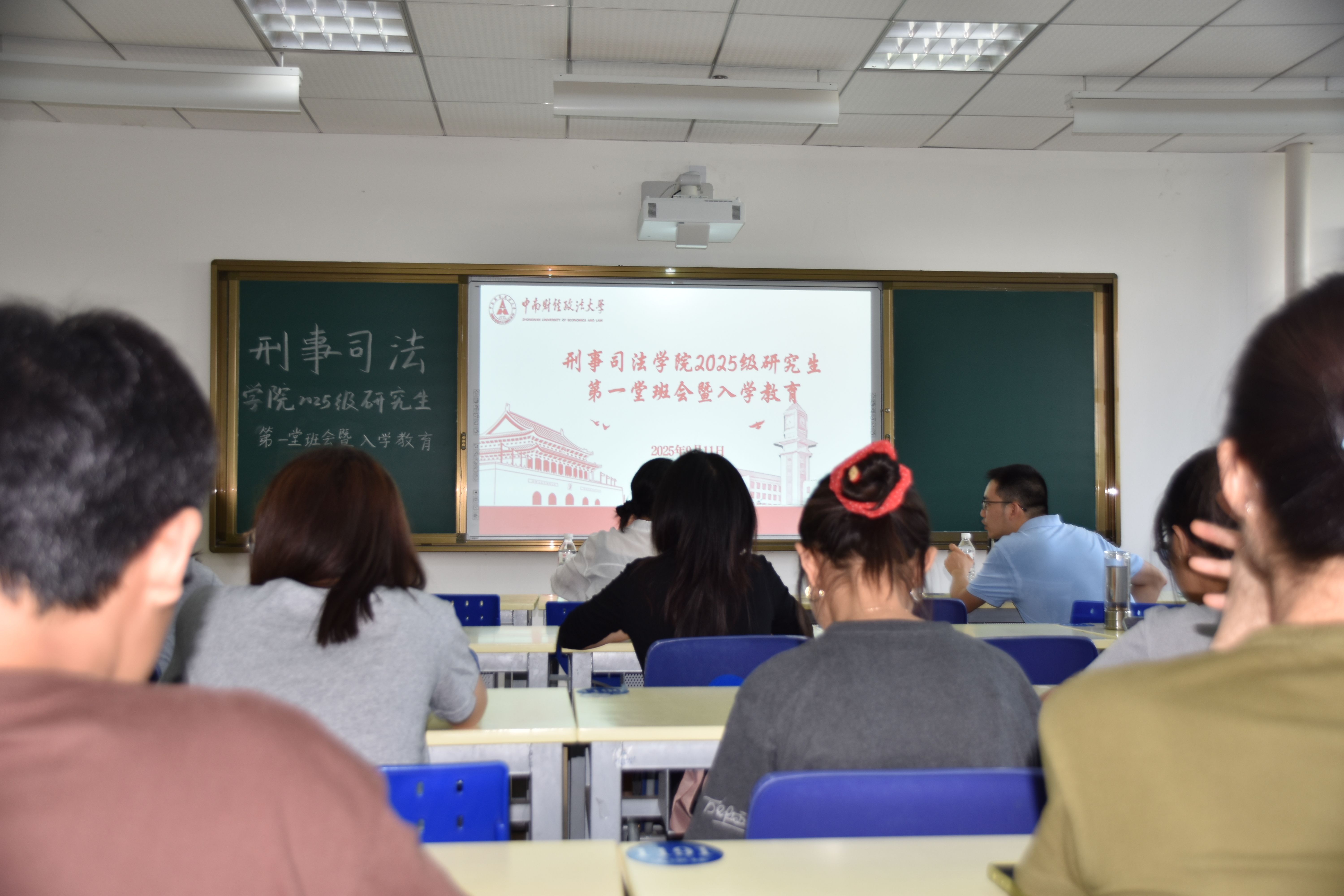 新闻网讯(学生通讯员 查盈盈 摄影 刘千硕)为深入学习贯彻习近平总书记关于研究生教育的重要指示精神,落实立德树人根本任务,切实做好2025级研究生新生入学教育工作,2025年9月11日,刑事司法学院于文澴楼215教室召开2025级研究生第一堂班会暨入学教育。刑事司法学院党委委员、副院长焦俊峰,刑事司法学院研究生办公室主任、研究生辅导员王晓丹,刑事司法学院兼职辅导员马高昂及2025级全体研究生参会,会议由刑事司法学院研究生会执行主席周雨奇主持。