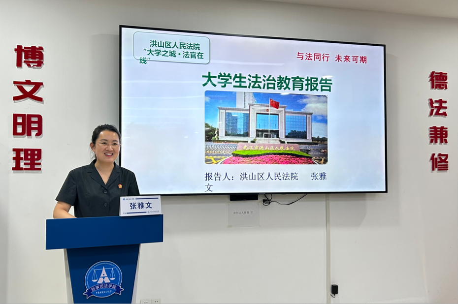 新闻网讯(学生通讯员 王佳忆 摄影 袁兆萱)9月17日19时,“刑司新文科大讲堂——刑事司法视野下大学生涉罪问题及对策”主题学术讲座在中南财经政法大学南湖校区文治楼二楼会议室成功举办。本次讲座特邀洪山区人民法院刑事审判庭三级法官张雅文主讲,刑事司法学院院长董邦俊教授主持。洪山区法院助理法官冯泽军莅临学院;国家治理学院叶强副教授、刑事司法学院彭峰副教授以及部分博士、硕士研究生、本科生共同参加此次讲座。