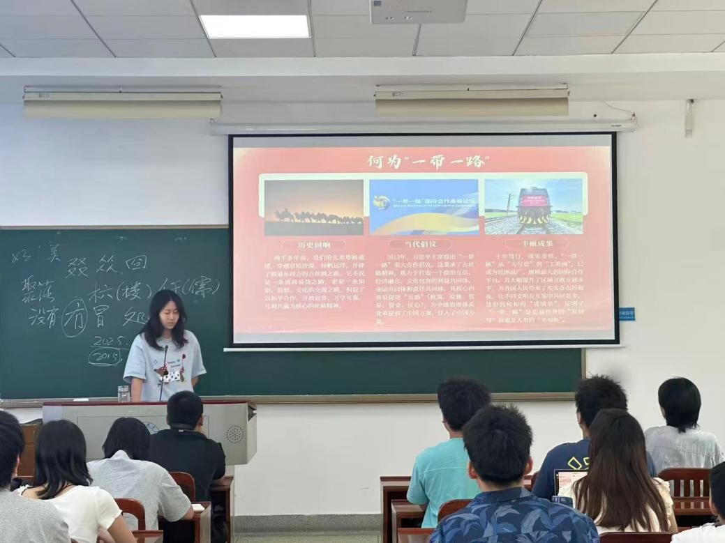 活动以“认识、理解、思考、行动”为主线。在“时代背景”环节,主持人通过对比古丝绸之路与“一带一路”海陆线路图,同学们系统了解了“一带一路”的基本概念与主要目标。结合中欧班列、雅万高铁等项目的落地实例,同学们深入理解了“政策沟通、设施联通、贸易畅通、资金融通、民心相通”五大合作内容,明确了“一带一路”作为合作共赢平台的重要意义。