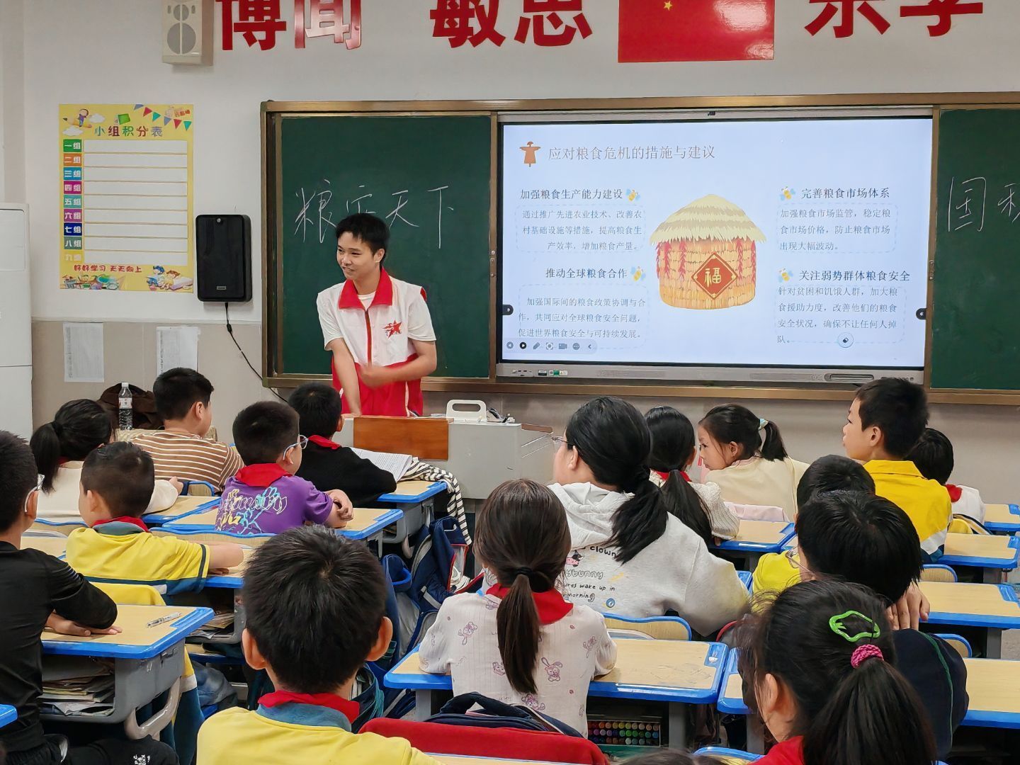 新闻网讯(学生通讯员 刘清远 陈炜杰)10月16日,刑事司法学院星火志愿队走进光谷第五小学,开展以“粮安天下,国稳民安”为主题的志愿宣讲活动。“一粥一饭,当思来之不易;半丝半缕,恒念物力维艰。”在物质日益丰富的今天,珍惜粮食依旧有着重大的现实意义。
