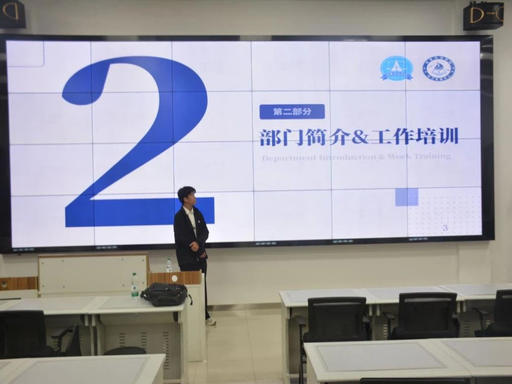 在部门简介和工作培训环节,学风建设部副部长黄攀、实践部副部长许浩东系统讲解了中心的组织架构、部门分工及核心工作内容。从学业帮扶策划到活动宣传执行,从内部管理制度到对外协作流程,全面细致的培训让成员们对中心运作模式和岗位职责有了清晰认识,为高效开展学习服务工作储备了专业能力。