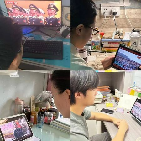为深入开展爱国主义教育,弘扬伟大抗战精神,9月3日,刑事司法学院组织全院师生观看中国人民抗日战争暨世界反法西斯战争胜利80周年纪念大会及阅兵式。教职工齐聚文治楼二楼会议室集中观看,本科生与研究生分别组织同步学习观摩。