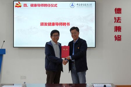 会上,还举行了健康导师聘任仪式。刑事司法学院党委书记张志刚向校医院医生钱东彬同志颁发"健康导师聘书"。校医院党委书记刘晓燕表示,健康导师工作机制是校医院贯彻学校党委"以师生为中心"理念的重要举措,校医院将以此为契机定期开展健康讲座、急救技能培训等活动,助力师生身心健康发展。