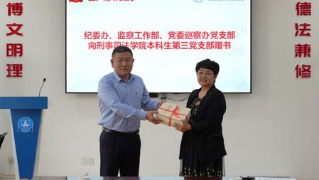 会上,纪委办、监察工作部、党委巡察办党支部书记张文剑代表支部向刑事司法学院本科生第三党支部赠送《习近平关于加强党的作风建设论述摘要》,本科生第三党支部书记黄文菊代表支部接受赠书并致谢。张文剑表示,赠书旨在帮助青年学子深化理论学习,坚定理想信念,推动深入贯彻中央八项规定精神学习教育向基层延伸,助力青年党员筑牢思想防线。