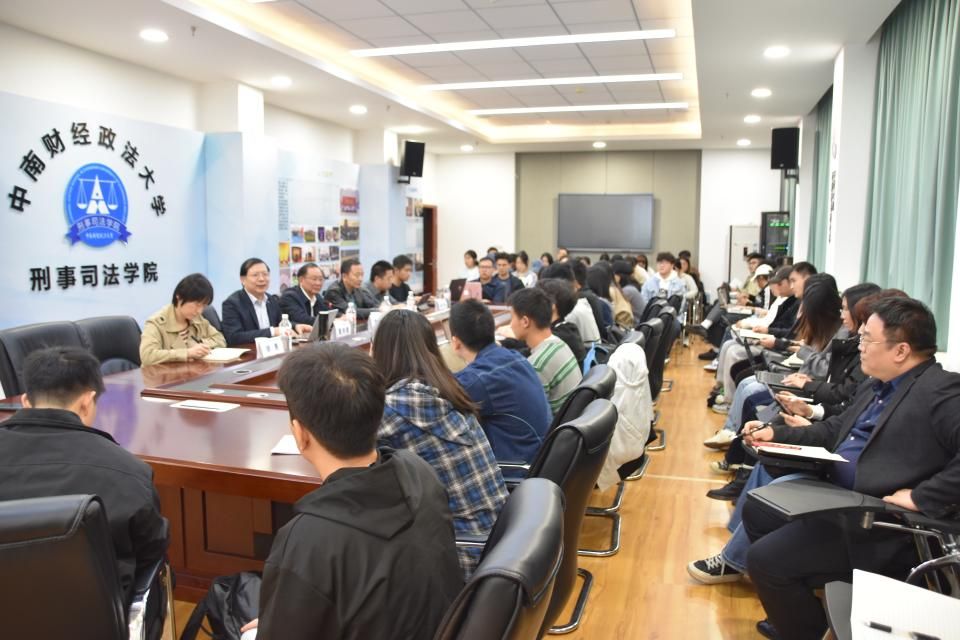 新闻网讯(学生通讯员 范晋霖 摄影 肖艺杰)11月5日19时,“资金分析鉴定的原理及立场”主题学术讲座在中南财经政法大学南湖校区文治楼二楼会议室举行。本次讲座采取线下会议的形式,特邀中央财经大学法学院教授、博士生导师、《中国司法鉴定》杂志副主编、中央财经大学预防金融证券犯罪研究所所长郭华教授主讲。讲座由刑事司法学院院长董邦俊教授主持,刑事司法学院杨立云教授、栾兴良副教授、徐惠老师以及部分博士、硕士研究生参加此次讲座。